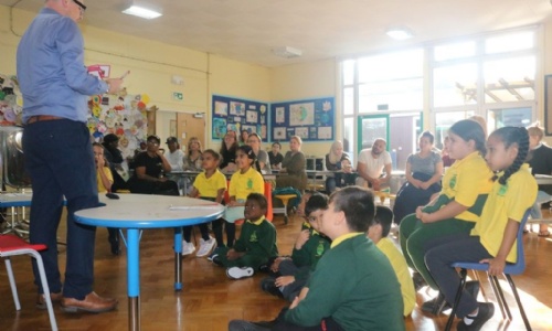 Mr Martin speaking to parents about Phonics with a demonstration.